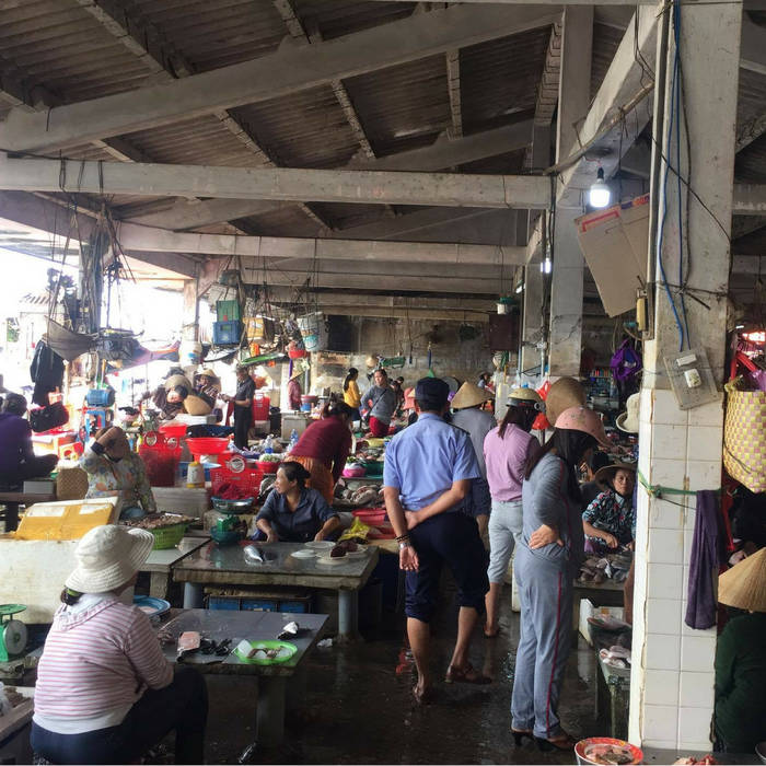 This building is right next to the water and the vendors sitting around the fishes. The floor is super wet and slippery so I had to be careful not to fall. A Woman cleaned the floor with a typical Vietnamese broom and I got this fun "swish" sound in the recordings. Now we listen to really amazing walla sounds with all the woman talking to each other. It is amazing, so I stayed here for a while to get this recording. But then I was listening to hammering sound and was curious what that sound is and where it is coming from. I went to this little area and saw this Woman crushing eyes with a wooden cleaver. I am back on the street and the wind is getting a little bit stronger now. I am walking back to my motorbike and before I stop the recording I saw this man opening up the street with a hammer and chisel so I got this sound too! Awesome sound but Libby and I will come back with camera and Gimbal to film and record this awesome sound again! Also, the night market has some amazing sounds to offer so stay tuned for that!