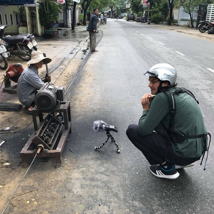The second sound of this Album is something for sound designers or experimental music makers but for anybody else of course. I drove around Hoi An and saw these construction workers building a new house and one Guy was cutting wires that runs through this wire drawing machine.